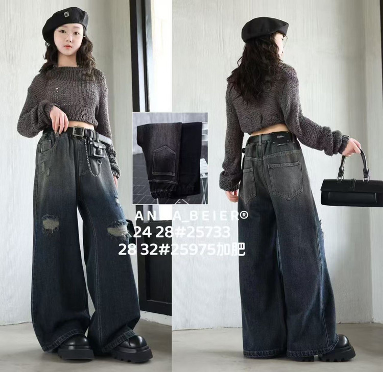 شلوار جین بگ دخترانه اورجینال وارداتی با اکسسوری